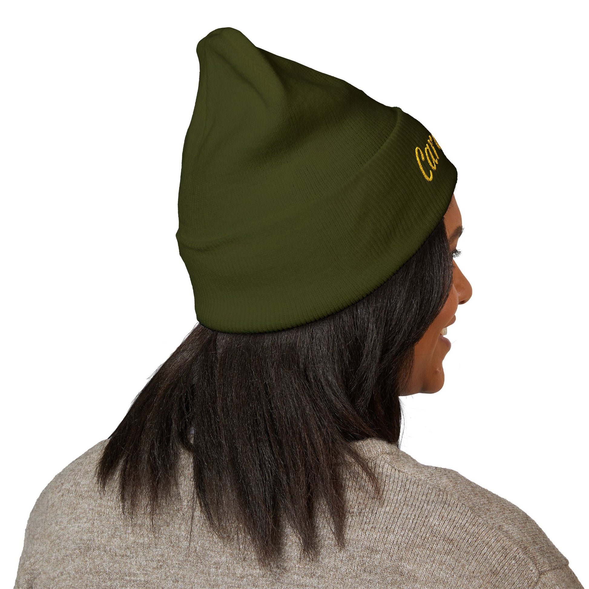 Caregiver Embroidered Beanie — Classic Cuffed w/Gold Stitching