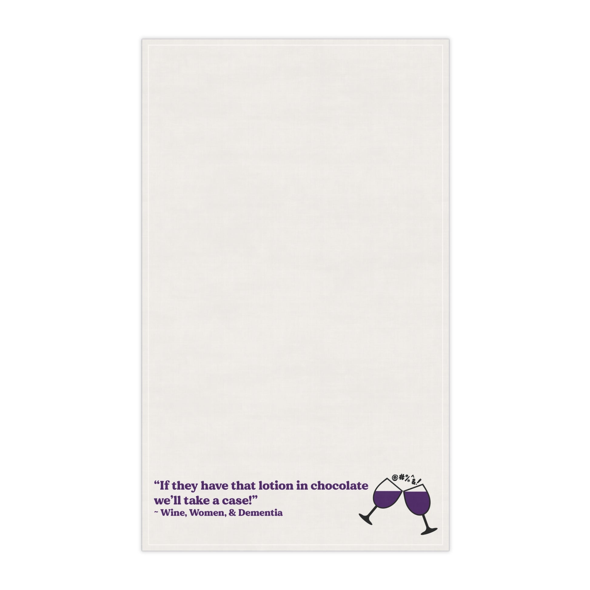 Fun and functional tea towels featuring some of the memorable quotes from the dementia family caregiver documentary, Wine, Women, & Dementia. Add some caregiver humor to your kitchen, especially on those days when smiles are hard to come by. Ideal for caregivers, family members, and loved ones. Relevant for holidays, family gatherings, and everyday use in the kitchen.