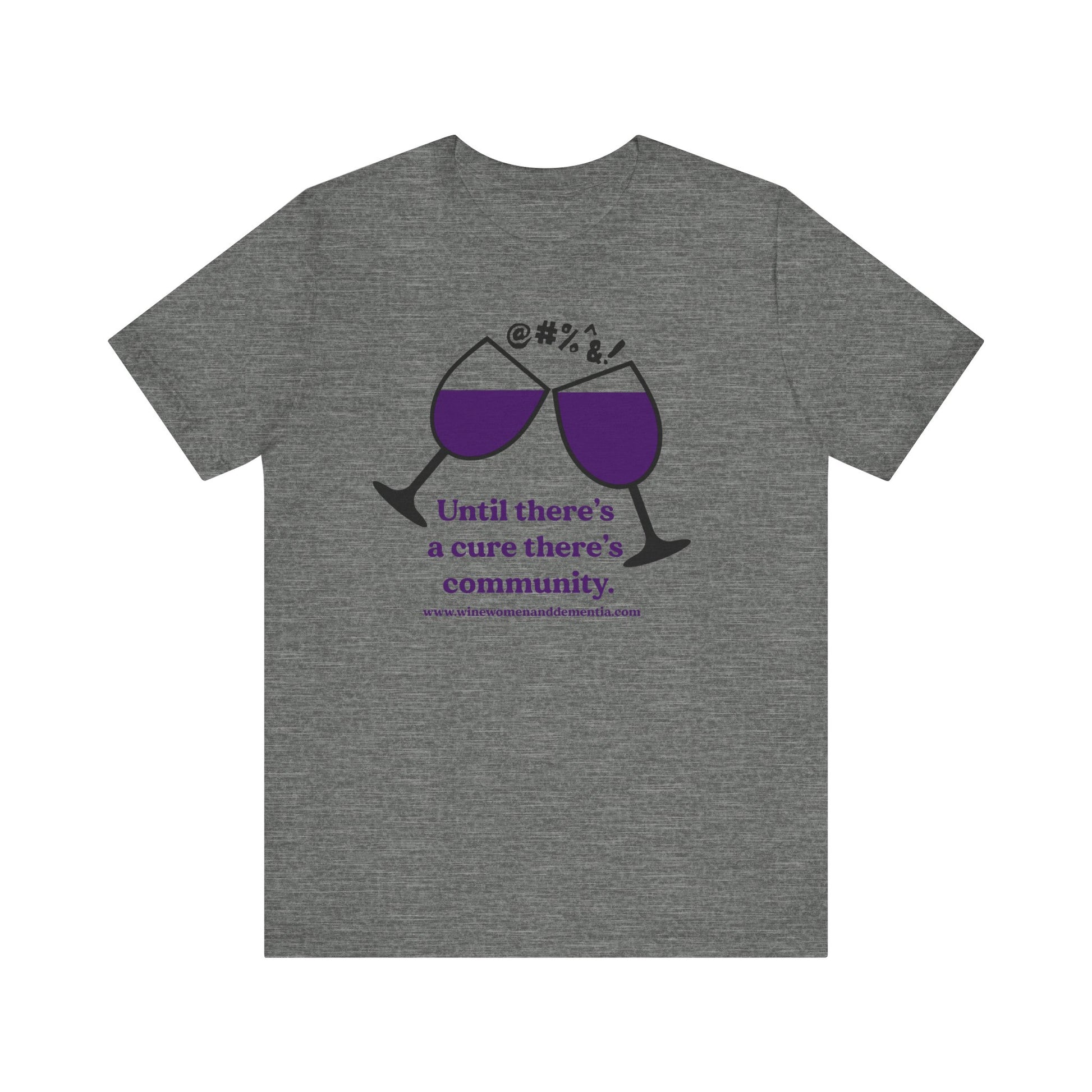 The Wine, Women, & Dementia T-shirt is here. Comfortable, casual vibe, perfect for running down the street after your dementia person or collapsing in exhaustion at the end of the day. This T-Shirt rocks for celebrating yourself and your person living with dementia even when it doesn't feel like a celebrating kind of day. Get it to spread dementia awareness at the movies, grocery store, doctor's office, and all those social gatherings you're too tired to attend.