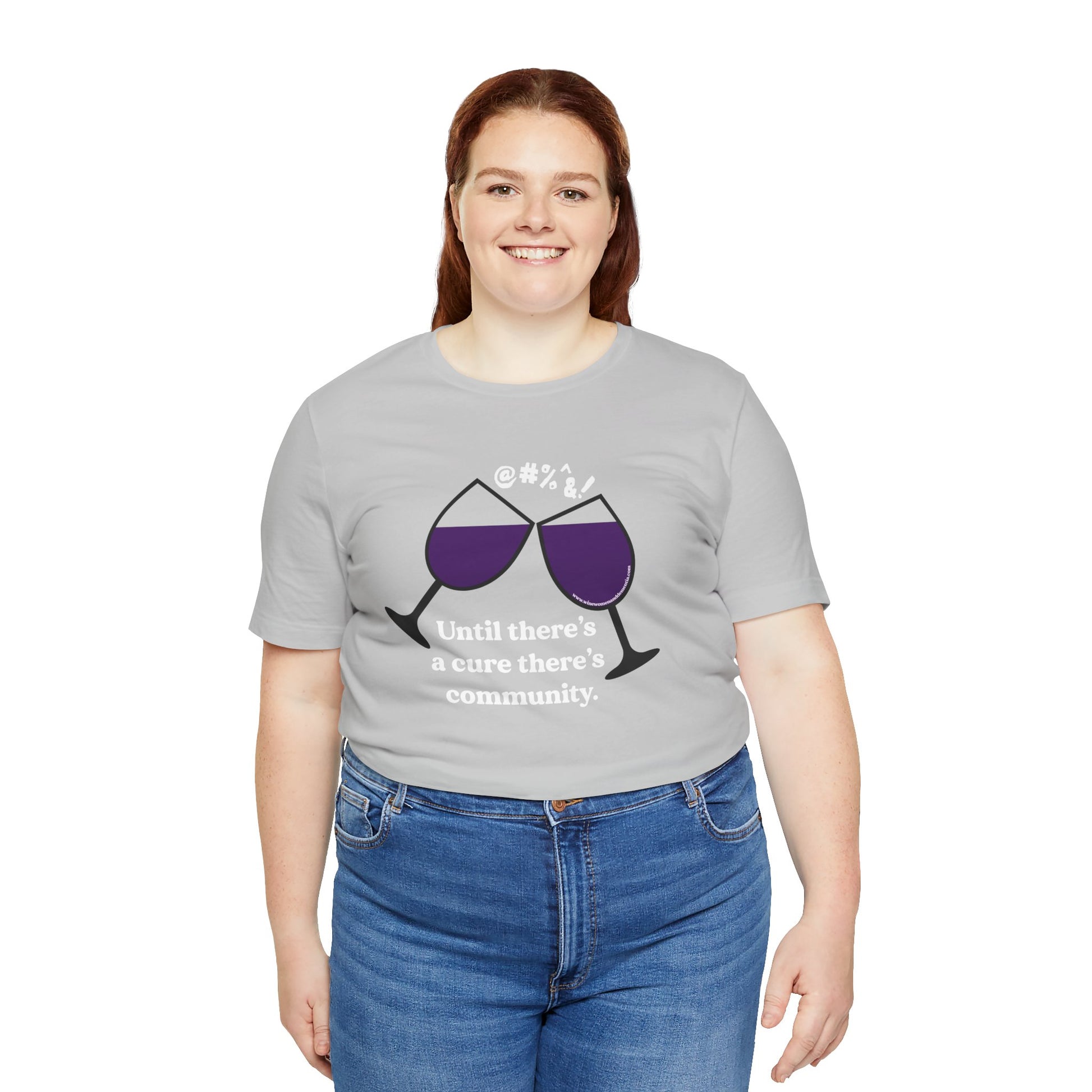 The 'Wine, Women, & Dementia' T-shirt is here. Comfortable, casual vibe, perfect for running down the street after your dementia person or collapsing in exhaustion at the end of the day. This T-Shirt rocks for celebrating yourself and your person living with dementia even when it doesn't feel like a celebrating kind of day. Get it to spread dementia awareness at the movies, grocery store, doctor's office, and all those social gatherings you're too tired to attend.